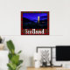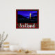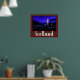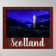 Beautiful scenic poster features night view of Glenfinnan Monument, on Clan Stewart tartan background with "Scotland" text overlay