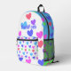 The artwork features an assortment of pastel-coloured hearts gliding smoothly over the design space along with a customizable typography field, which currently reads "Backpack" for name or other personalization.