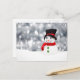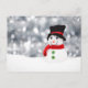 Cute little snowman glistening in the sunshine. Red Scarf, black top hat and green buttons.