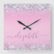 Glitter Confetti Personalized Pink Square Wall Clo Clock