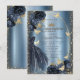 Glitter Dress,Roses,Butterflies Blue Metallic Invitation