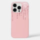 This iPhone 16 Pro case is shown in a pretty blush pink colour faux glitter drip print.