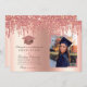 Glitter Drip Rose Gold Graduation Photo Invitation