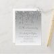 This trendy 25th wedding anniversary party invitation features a sparkly silver faux glitter drip border and silver ombre background. The words "25th Anniversary" and the first names of the couple appear in casual silver gray handwriting script, with the rest of the customizable text in sans serif font. The same silver glitter drip design appears on the reverse side.