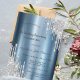 A modern, chic, and glamourous with silver glitter drips on a blue metallic background.