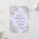 A modern, chic, and glamourous with silver glitter drips, and flowers on a lavander background.