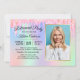 The design is so elegant and modern that features a Blue floral and a Golden accent style with Your picture on the right side along with a handwritten script design. Also, there is a chic frame of beads where you can add your photo to make the invitation extra special and customizable.