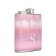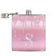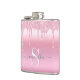 Personalized girly and chic flask featuring sparkly pink faux glitter dripping from the top against a pink background. You can add your initial and name in trendy typography with swashes.