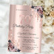 Glitter Drips Rose Gold Flowers 70th Birthday Invitation