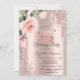 A modern, chic, and glamourous rose gold glitter drips, and watercolor roses on a rose gold background.