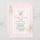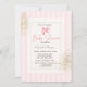 Glitter Dust Pink Bow Striped Baby Shower Invitation