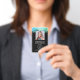 This modern name badge design can be customized with your business name, logo and contact details as well as an employee photo and barcode.