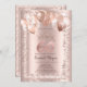 Elegant glitter crown, balloons, and frame on rose gold background.