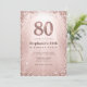 Glitter Glam Rose Gold Sparkles Chic 80th Birthday Invitation
