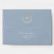 Simple, elegant, modern glitter gold and dusty blue wedding invitations 5x7 envelope with return address and monogram at the top back.