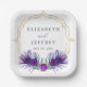 Glitter Gold Blue Purple Peacock Plume Wedding Paper Plate
