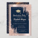 Glitter Graduation Cap,Rose Gold Drips,Navy Blue Invitation