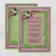 This contemporary invitation has green and pink background with faux glitter frame. Two whimsical cupcakes and a matching ribbon complete the look. The back of this premium design has the same colour theme. There is plenty of customizable text on the front of this invitation for you to add your party information. Shown here as a Cupcake Exchange party, this versatile design can be used for just about any event including birthday parties and other holiday gatherings.