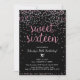 Glitter Pink & Silver Sweet 16 Birthday Invitation