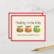 Fun, festive Glitter Pudding Christmas card, showing a trio of faux glitter Christmas plum puddings. The main text reads PUDDING ON THE GLITZ, which is a play on the name of a well-known song and phrase.The smaller text reads MERRY CHRISTMAS FROM ALL OF US. On the reverse, there is a placeholder festive greeting. All text is CUSTOMIZABLE, so you can tweak/replace the text as you wish, including adding your business name on the front, and personalizing the greeting on the reverse. This would be an ideal Christmas greeting postcard for your business clients, company suppliers, corporate neighbours, friends, etc. Part of the CHRISTMAS PUDDING Collection with cards, clothing, home decor and gifts by Berean Designs.