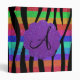 Rainbow zebra stripes pattern with blue, purple, gold, red, orange, green, yellow and pink background with purple scallop circle and monogram letter change to any letter a,b,c,d,e,f,g,h,i,j,k,l,m,n,o,p,q,r,s,t,u,v,w,x,y,z