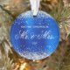 Créez votre propre "Notre premier Noël en tant que Madame. & Mr." cercle photo ornement acrylique pour jeunes mariés. Parties scintillant en argent Faux et art numérique en foil bleu foncé brillant. Remplacez le graphique de l'art numérique par votre image mariage ou lune de miel. Vous pouvez customiser le style de texte, la police ou les couleurs.