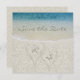 Destination Wedding - Beach - Glitter Sandy Beach Wedding Save the Date - Two hand drawn hearts appear to be written in the sand- inside personalized monograms- the sand is glitter - soft foamy tide from the ocean just touching the beach - romantic and casual. NO real glitter is used on this product, it is artistically created to look real.