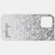 Customized monogrammed script name modern stylish faux glitter and elegant girly silver Add Your Name iPhone 13 Pro Max Trendy Case are personalized and perfect for Sweet 16, 13th, 21st, 30th, 40th, 50th, 60th, 70th, Birthday Party, Weddings, Mother's Day, Valentine's Day, Quinceanera, Bridal Shower, Bachelorette Party, Anniversary, or New Driver