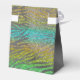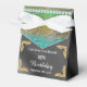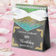 An elegant Birthday Favour Box, with gold and silver foil. A teal glitter Zebra print mixed with light green, gold green colours and decorated with shiny diamonds.