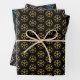 Glitter snowflake pattern black Christmas holiday Wrapping Paper Sheets. Each sheet features a pattern of snowflakes in gold, rose gold and blue glitter on black background.