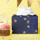 Gold and silver simulated faux glitter stars design on grunge watercolor style pattern in shades of dark royal and midnight blue.