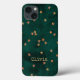 Multicolored simulated faux glitter stars design on grunge watercolor style pattern in shades of dark forest green. Personalize with your name or initials in matching lettering.