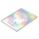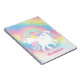 This magical and enchanting custom notebook features a pastel rainbow gradient background. A Glitter design rainbow is placed just behind a cute, glitter style unicorn. Several sparkly gold glitter stars are placed around the rainbow and unicorn image. The bottom portion features white clouds with a sample personalized name printed in pink.