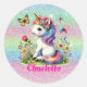 Glitter unicorn meadow wildflowers classic round sticker