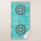 Le fond est un bleu turquoise doux et muet avec un mandala de lotus vert citron argenté pour le centre-pièce avec une parties scintillant d'argent ajoutée sur les bords pour glamour supplémentaire.