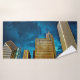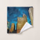 Dramatic image of Chicago city skyline as setting sun causes the buildings to glow gold and darkens the skies behind the buildings to create tremendous contrast