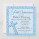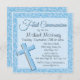 Glittering Sequin Blue First Communion Invitation
