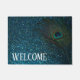 Stunning peacock feather still life photography. The peacock feather looks brilliant against the glittery aqua blue background.