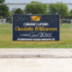 Fun banner sign featuring your congrats to the graduate in a classy and fun design layout in their school colors celebratory faux glitter and confetti elements.