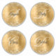 If you keep the extra large 14x14" size... the individual circle shapes are approximately 6" in diameter. I approximate the size looking at the grid in the system, so the circles may be a slightly off 6 inches. The background features digital art gold glitter and golden faux metallic foil that prints like a photo. Create your own four different fancy calligraphy monogram stickers. If you do use different letters, you may notice that some of the letters have so much flourish you may want to re-centre that letter on the individual sticker. You can also increase the font size for the names as needed.