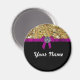 PERSONALIZE this stylish elegant girly glittery sparkly gold swirly modern abstract beaded & pearl bling pattern and hot pink magenta bow and ribbon, on black with your own text, name or monogram, initials .