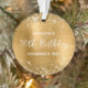 Créez votre propre ornement acrylique circulaire de 50e anniversaire pour votre belle-mère Vous pouvez customiser le texte de bloc ou le libellé de calligraphie ou le style de police. L'arrière - plan de l'art numérique présente une parties scintillant en faux or et une feuille d'ombre dorée jaune. À l'arrière, vous pouvez ajouter une photo de famille si vous le souhaitez. Fille fête d'anniversaire pour elle.