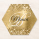 Glittery Gold Foil Fancy Monogram Paper Coaster