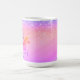 A pink, lavender and orange shaded mythical unicorn with stars on an ombre lavender pink backdrop complete with pin and lavender glitter where below that is where you can customize it. Girly glam vibes.