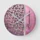 Glittery Leopard Print on Glossy Hot Pink Round Clock