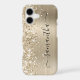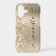 Girly faux sparkly pale gold glitter highlights on the left edge over a faux platinum cream or golden champagne brushed metal foil.