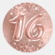 Glittery Rose Gold Foil Number 16 Birthday Classic Round Sticker