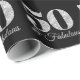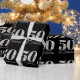 A 50 & Fabulous typography design with silvery grey glitter and foil on black colour wrapping paper.