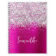 Glittery Silver and Hot Pink Glam Script Name Notebook