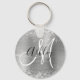 Glittery Silver Foil Black and White Monogrammed Keychain